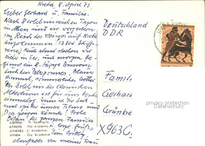 old postcard Athens Athen Die Academie postalisch gelaufen Erhaltung siehe scans