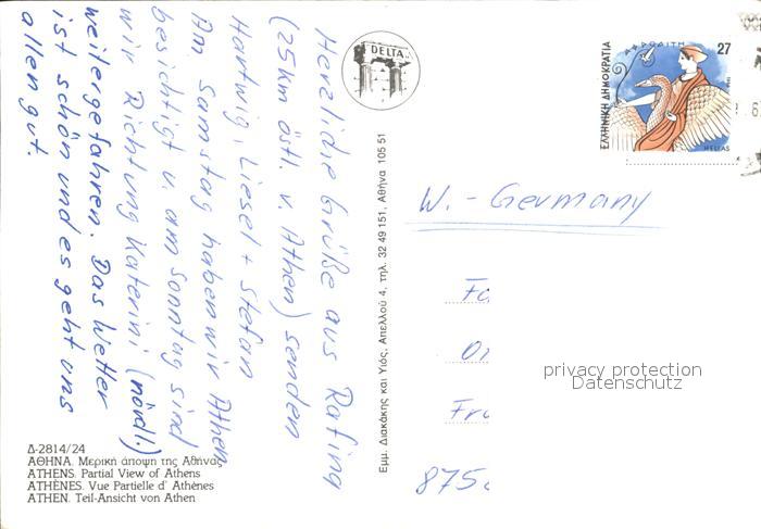 old postcard Athens Athen Fliegeraufnahme postalisch gelaufen Erhaltung siehe scans