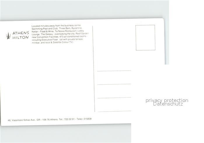 Athens Athen Hilton Hotel postalisch nicht gelaufen Erhaltung siehe scans
