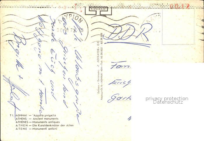 old postcard Athens Athen Kunstdenkmaeler postalisch gelaufen Erhaltung siehe scans