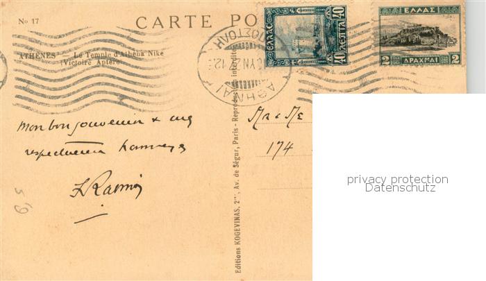 old postcard Athens Athen Nike Temple postalisch gelaufen Erhaltung siehe scans [FriedD77]