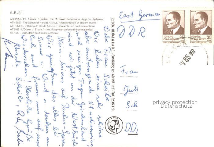 old postcard Athens Athen Odeon Herodes Atticus postalisch gelaufen Erhaltung siehe scans