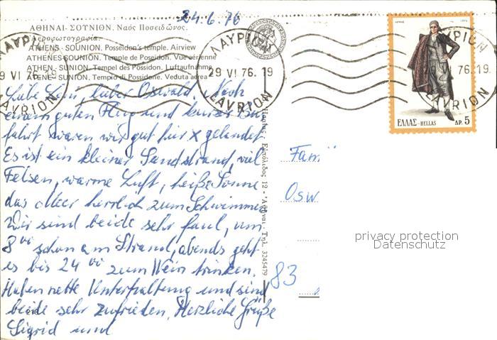 old postcard Athens Athen Poseidon Tempel Fliegeraufnahme postalisch gelaufen Erhaltung siehe scans