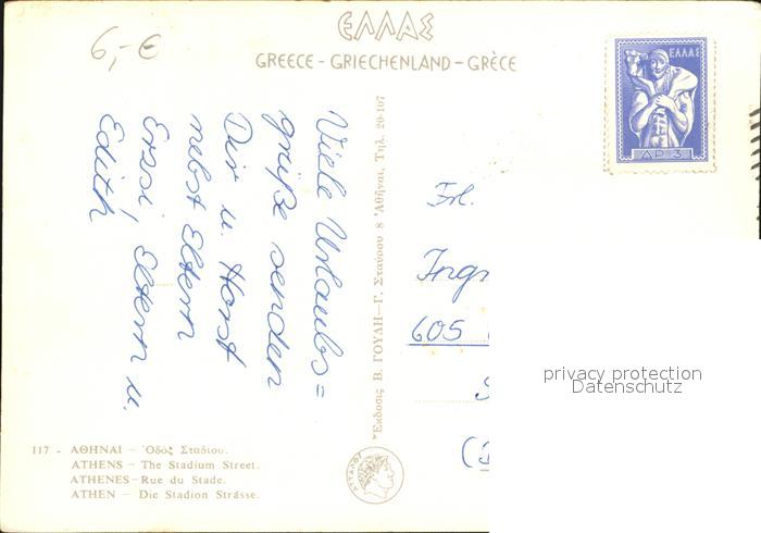old postcard Athens Athen Stadion Strasse postalisch gelaufen Erhaltung siehe scans [WerneD78]