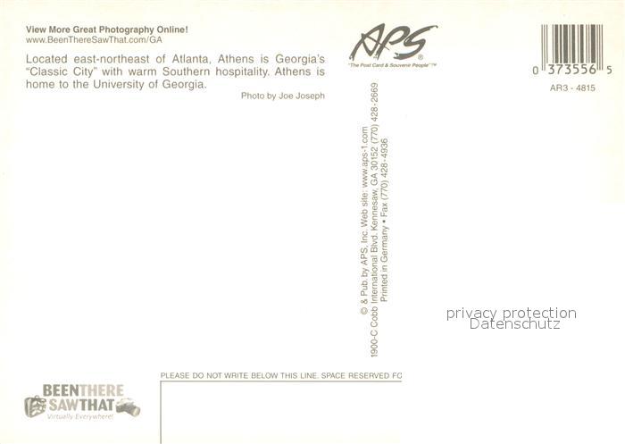 73743936 Athens Georgia Classic City with warm Southern hospitality postalisch nicht gelaufen Erhaltung siehe scans [WerneD78] KatCode: 14140120000000