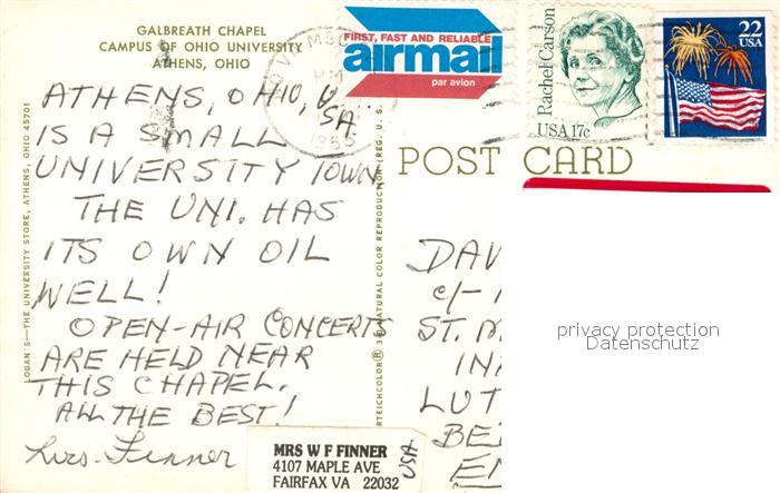 73131707 old postcard Athens Ohio Galbreath Chapel Campus University postalisch gelaufen Erhaltung siehe scans [KathaD81] KatCode: 14140370000000