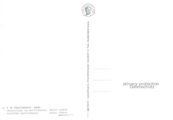 74137119 Athos Chalkidiki Greece Kloster Esfygmenos postalisch nicht gelaufen Fliegeraufnahme Erhaltung siehe scans [FriedD77] KatCode: 11190