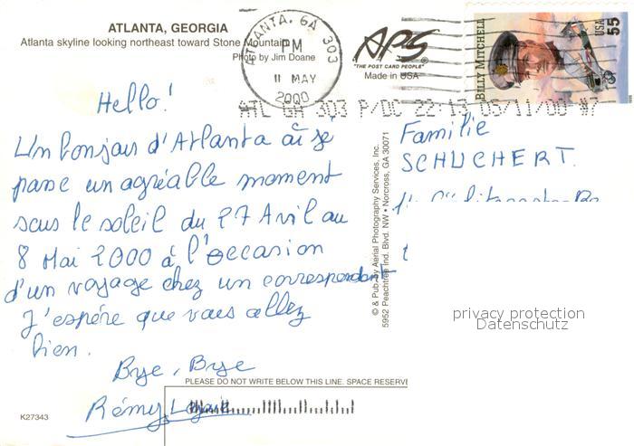 73716074 old postcard Atlanta Georgia Atlanta skyline Air view postalisch gelaufen Erhaltung siehe scans [WerneD78] KatCode: 14140120000000