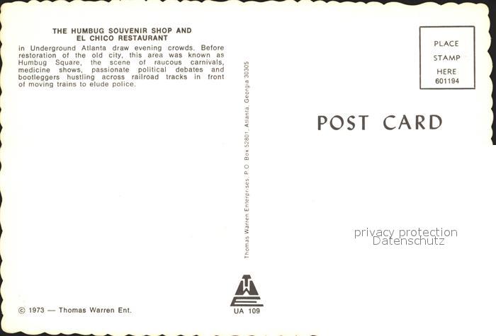 72070988 Atlanta Georgia Humbug Souvenir Shop El Chico Restaurant postalisch nicht gelaufen Erhaltung siehe scans KatCode: 14140120000000