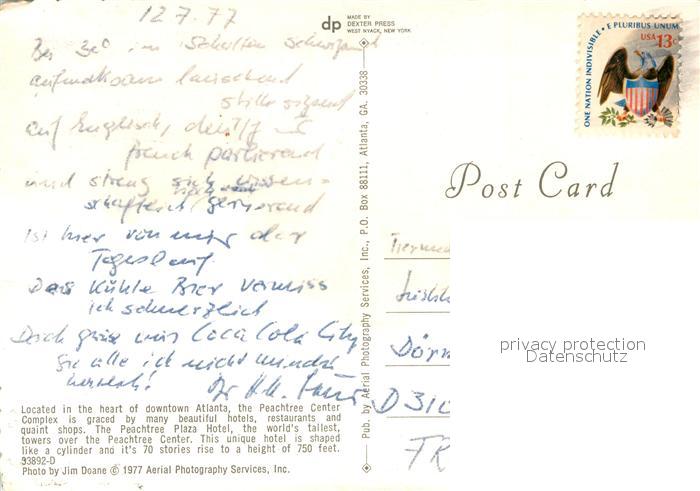 73682618 old postcard Atlanta Georgia Peachtree Center Complex Aerial View postalisch gelaufen Erhaltung siehe scans [WerneD78] KatCode: 14140120000000