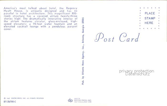 11688184 Atlanta Georgia Regency Hyatt House Hotel postalisch nicht gelaufen KatCode: 14140120000000