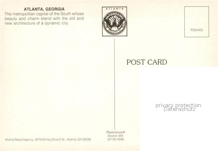 73745464 Atlanta Georgia Teilansicht postalisch nicht gelaufen Erhaltung siehe scans [LiesaD40] KatCode: 14140120000000