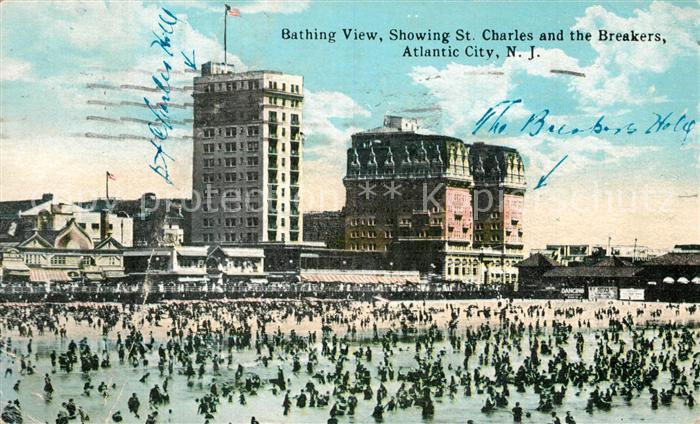 73300088 old postcard Atlantic City New Jersey Bathing view showing St Charles and the Breakers postalisch gelaufen Erhaltung siehe scans [FriedD77] KatCode: 14140320000000