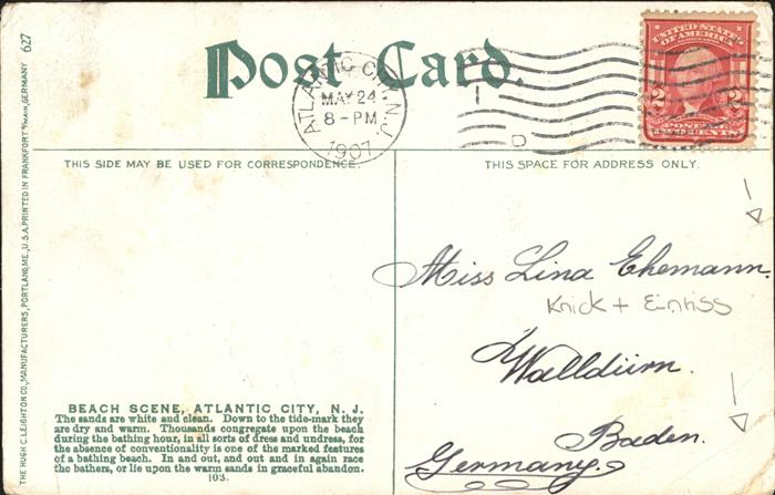 11112182 old postcard Atlantic City New Jersey Beach postalisch gelaufen KatCode: 14140320000000