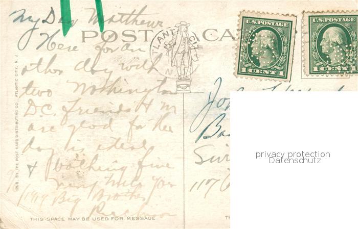 73299211 old postcard Atlantic City New Jersey Beach Front Hotels postalisch gelaufen Erhaltung siehe scans [FriedD77] KatCode: 14140320000000