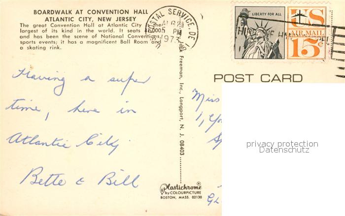 73127783 old postcard Atlantic City New Jersey Boardwalk Convention Hall postalisch gelaufen Erhaltung siehe scans [KathaD81] KatCode: 14140320000000
