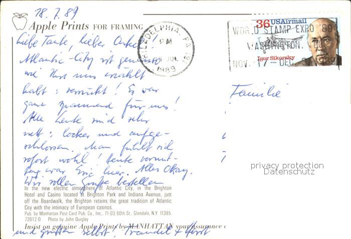 72329089 old postcard Atlantic City New Jersey Brighton Hotel postalisch gelaufen Erhaltung siehe scans KatCode: 14140320000000