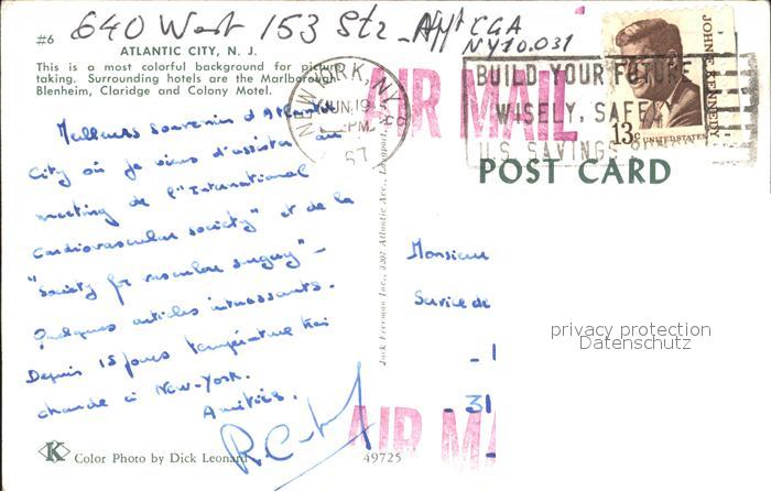 72230179 old postcard Atlantic City New Jersey Colony Motel Claridge postalisch gelaufen Erhaltung siehe scans KatCode: 14140320000000