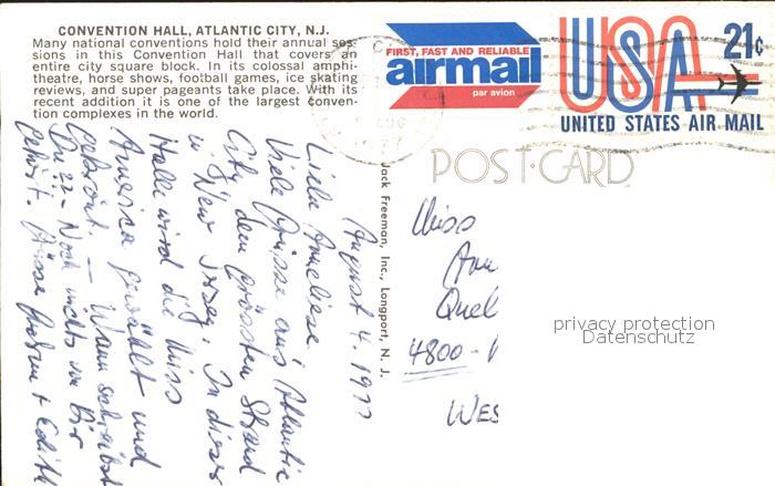 71954722 old postcard Atlantic City New Jersey Convention Hall postalisch gelaufen KatCode: 14140320000000