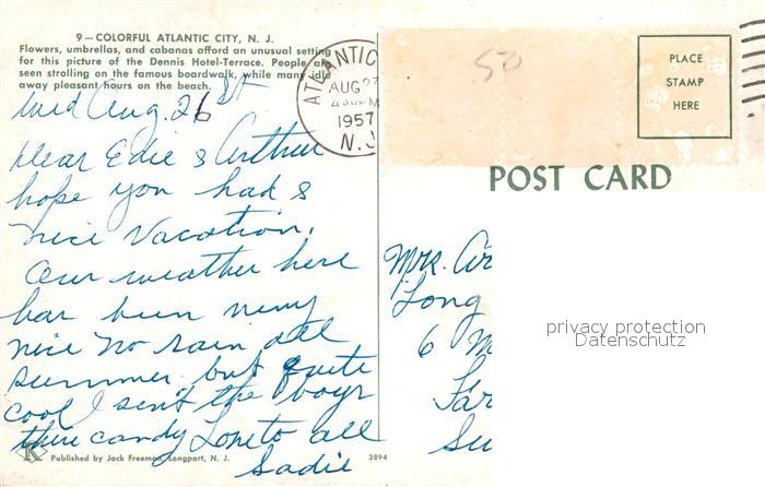 73130635 old postcard Atlantic City New Jersey Dennis Hotel Terrasse postalisch gelaufen Erhaltung siehe scans [KathaD81] KatCode: 14140320000000