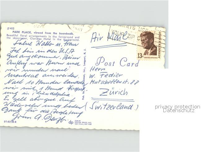 71567908 old postcard Atlantic City New Jersey Park Place Air Mail postalisch gelaufen Erhaltung siehe scans KatCode: 14140320000000