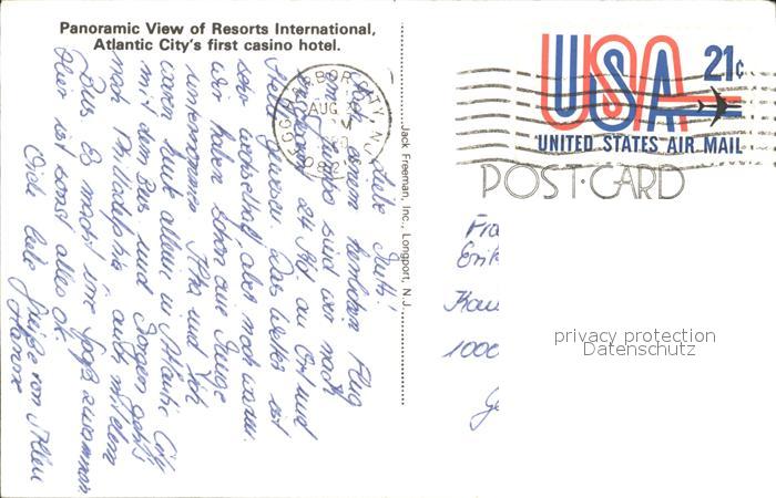 72091453 old postcard Atlantic City New Jersey Resorts International Hotel postalisch gelaufen Erhaltung siehe scans KatCode: 14140320000000