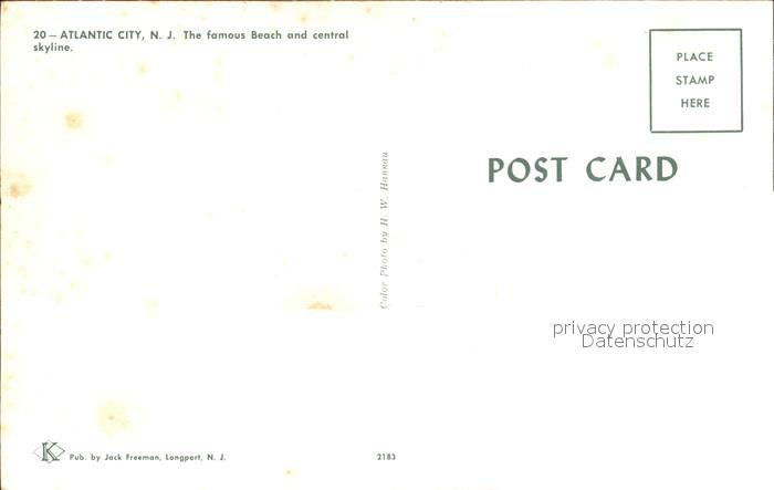 72349005 Atlantic City New Jersey The Beach and central skyline postalisch nicht gelaufen Erhaltung siehe scans KatCode: 14140320000000