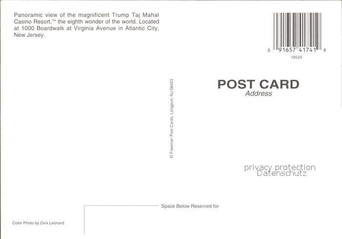 72397948 Atlantic City New Jersey Trump Taj Mahal postalisch nicht gelaufen Erhaltung siehe scans KatCode: 14140320000000