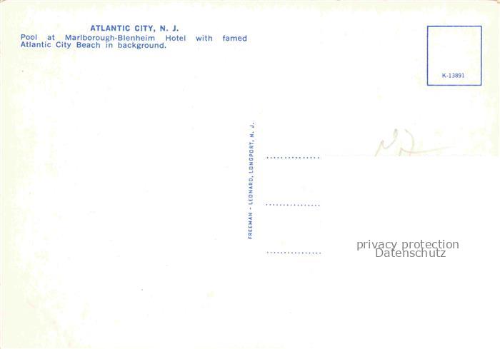 74092456 Atlantic City New Jersey USA Pool at Marlboroug Blenheim Hotel with famed Atlantic Beach postalisch nicht gelaufen Erhaltung siehe scans [WerneD78] KatCode: 14140320000000