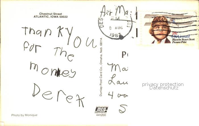 72510789 old postcard Atlantic Iowa Chestnut Street postalisch gelaufen Erhaltung siehe scans KatCode: 14140170000000