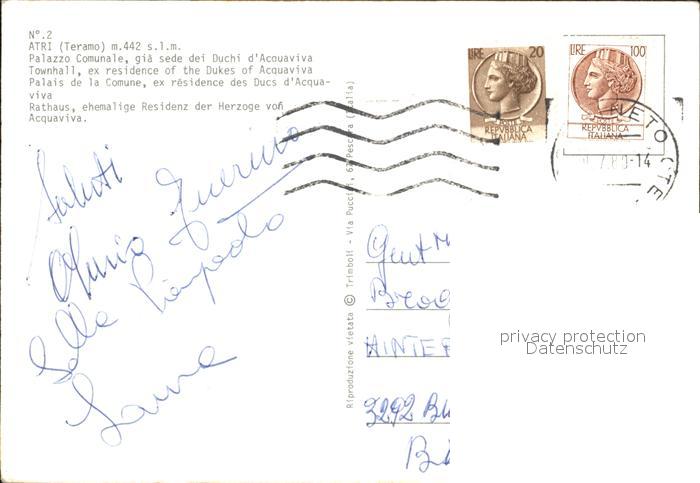 old postcard Atri Rathaus postalisch gelaufen Erhaltung siehe scans