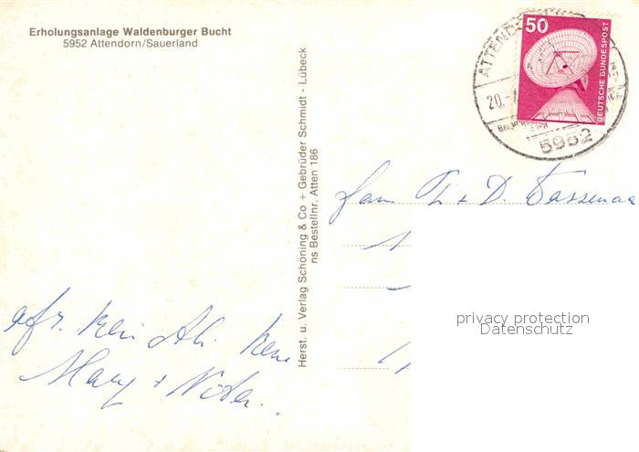72655708 alte Postkarte Attendorf Erholungsanlage Waldenburger Bucht postalisch gelaufen Erhaltung siehe scans [LiesaD40] KatCode: 11390221060601
