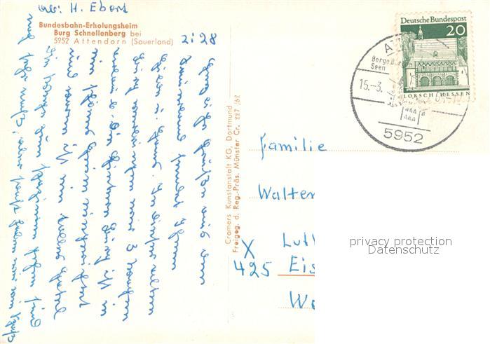 73618322 alte Postkarte Attendorn Bundesbahn Erholungsheim Burg Schnellenberg Fliegeraufnahme postalisch gelaufen Erhaltung siehe scans [FriedD77] KatCode: 11110005966004