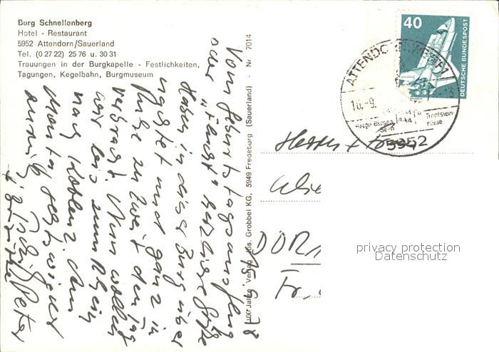 72401209 alte Postkarte Attendorn Burg Schnellenberg postalisch gelaufen Erhaltung siehe scans KatCode: 11110005966004