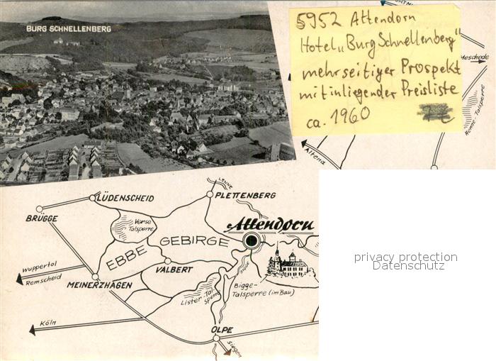 73692969 alte Postkarte Attendorn Burg Schnellenberg Panorama postalisch gelaufen Doppelkarte/Aufklappkarte Erhaltung siehe scans [WerneD78] KatCode: 11110005966004