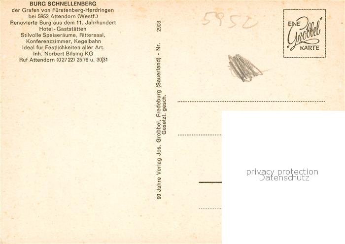 73843615 Attendorn Burghotel Schnellenberg Gastraeume postalisch nicht gelaufen Erhaltung siehe scans [WerneD78] KatCode: 11110005966004