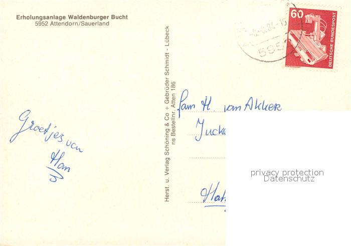 73306679 alte Postkarte Attendorn Camping Waldenburger Bucht postalisch gelaufen Erhaltung siehe scans [WerneD78] KatCode: 11110005966004