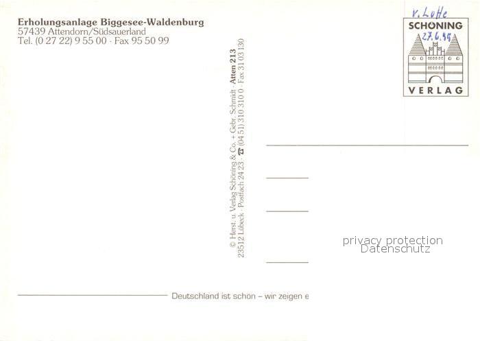 73174143 Attendorn Erholungsanlage Biggesee Waldenburg Camingplatz Fliegeraufnahme postalisch nicht gelaufen Erhaltung siehe scans [FriedD77] KatCode: 11110005966004