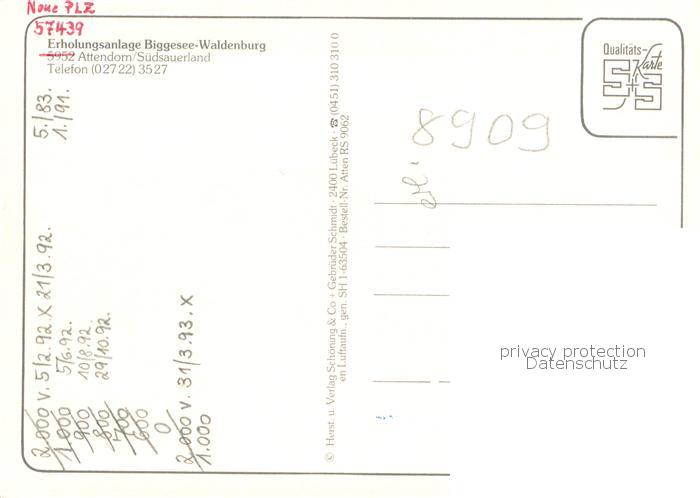 73780118 Attendorn Erholungsanlage Biggesee-Waldenburg postalisch nicht gelaufen Fliegeraufnahme Erhaltung siehe scans [FriedD77] KatCode: 11110005966004