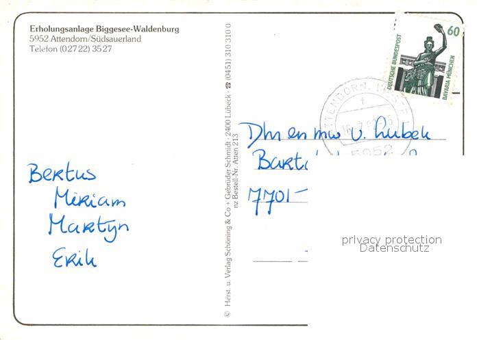 72870389 alte Postkarte Attendorn Fliegeraufnahme Camping Biggesee-Waldenburg postalisch gelaufen Erhaltung siehe scans [LiesaD40] KatCode: 11110005966004