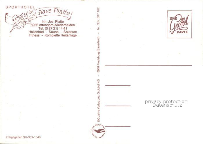 71952523 Attendorn Fliegeraufnahme Sporthotel Haus Platte postalisch nicht gelaufen Erhaltung siehe scans KatCode: 11110005966004