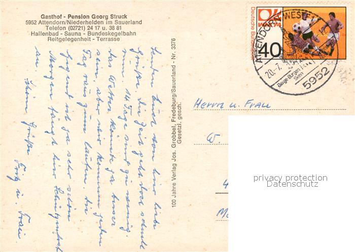 73333082 alte Postkarte Attendorn Gasthaus Pension Franz Struck postalisch gelaufen Erhaltung siehe scans [LiesaD40] KatCode: 11110005966004