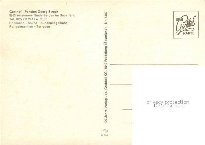 72929801 Attendorn Gasthof Pension Struck Speisesaal postalisch nicht gelaufen Erhaltung siehe scans [WerneD78] KatCode: 11110005966004