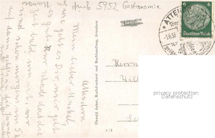 73702036 alte Postkarte Attendorn Hubertus Huette postalisch gelaufen Erhaltung siehe scans [LiesaD40] KatCode: 11110005966004