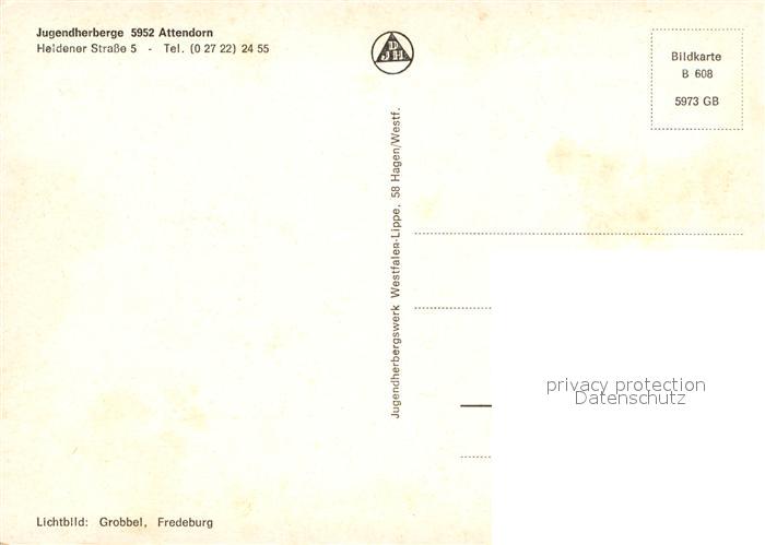 72959758 Attendorn Jugendherberge postalisch nicht gelaufen Erhaltung siehe scans [NatalD47] KatCode: 11110005966004
