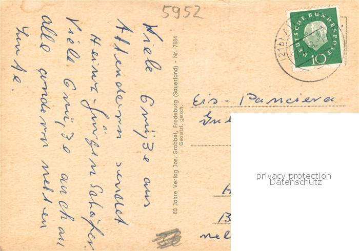 73692948 alte Postkarte Attendorn Panorama Ursulinen Kloster Rathaus Burg Schnallenburg Barbara Hospital Listertalsperre postalisch gelaufen Erhaltung siehe scans [WerneD78] KatCode: 11110005966004