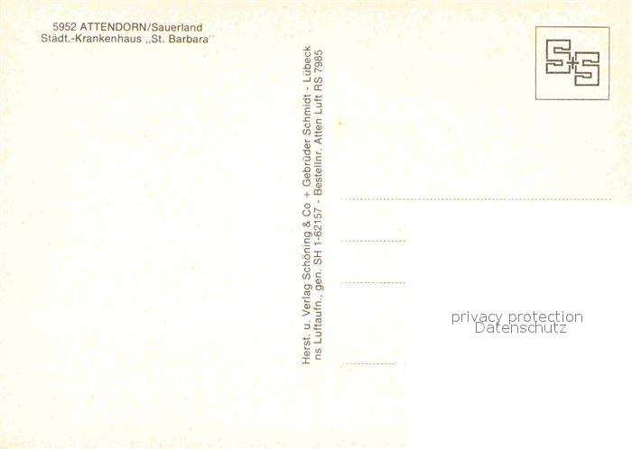 72878749 Attendorn Staedtisches Krankenhaus St Barbara Fliegeraufnahme postalisch nicht gelaufen Erhaltung siehe scans [FriedD77] KatCode: 11110005966004