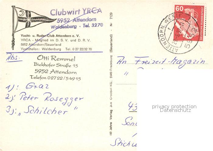 73717706 alte Postkarte Attendorn Yacht und Ruder Club Fliegeraufnahme postalisch gelaufen Erhaltung siehe scans [WerneD78] KatCode: 11110005966004