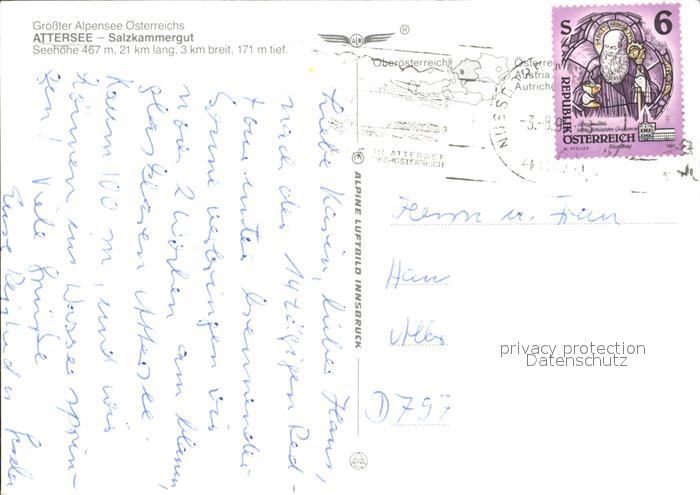 72488986 alte Postkarte Attersee Fliegeraufnahme postalisch gelaufen Erhaltung siehe scans KatCode: 11390315041702