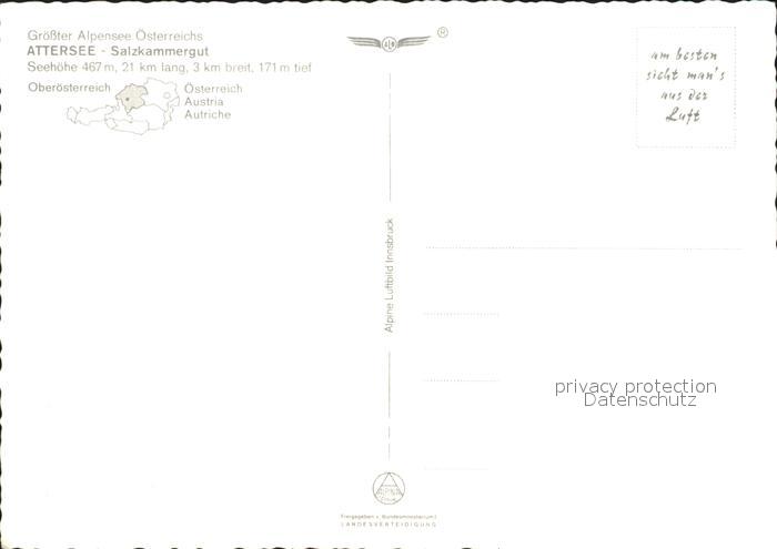 71847320 Attersee Fliegeraufnahme Salzkammergutsee postalisch nicht gelaufen Erhaltung siehe scans KatCode: 11390315041702
